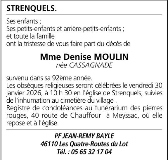 C’est avec une grande tristesse que nous vous annonçons le décès de Denise MOULIN survenu le lundi 26 janvier 2026 à Tulle.
